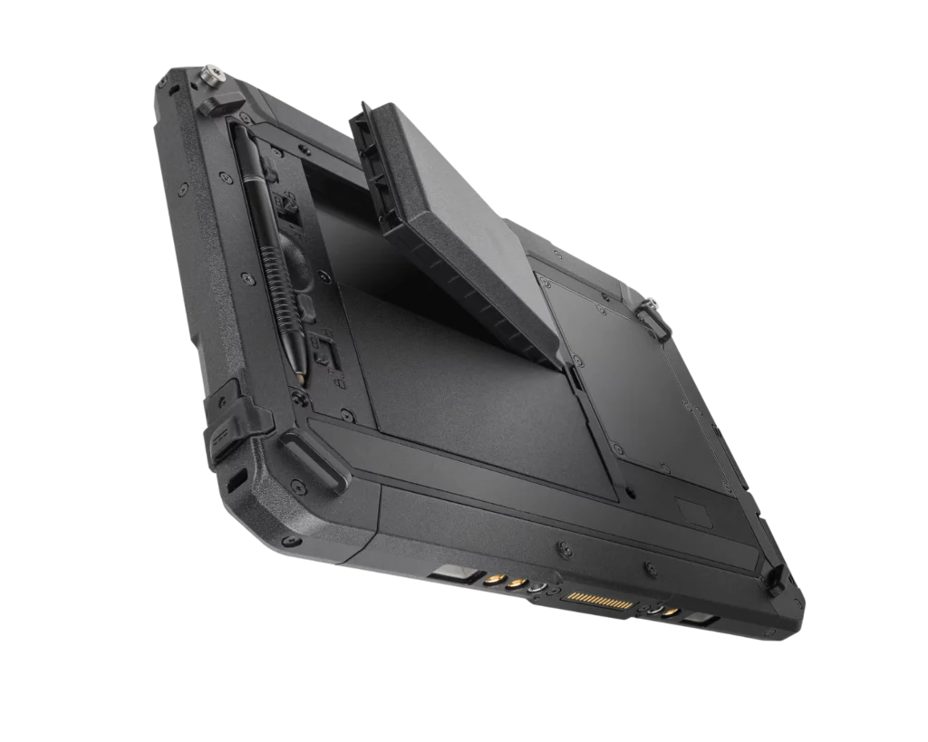 Mit dem im laufenden Betrieb austauschbaren Doppelakku und dem Hochleistungsakku ist die Akkulaufzeit sogar noch länger, ohne den Betrieb unterbrechen zu müssen. Der Hochleistungsakku verlängert die Systemlaufzeit im Vergleich zum Standardakku um das Zweifache und ist damit eine ideale Lösung für mobile Berufstätige, die eine längere Betriebsdauer als einen Tag benötigen.