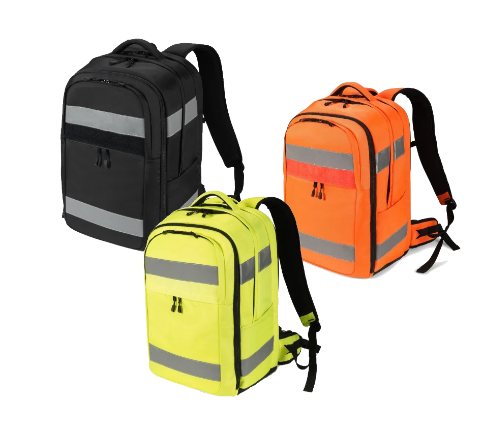 Durch die Verwendung von fluoreszierenden Stoffen und 3M-Reflexionsstreifen nach EN ISO 20471:2013 bieten die Rucksäcke eine hervorragende Sichtbarkeit und verbessern so die Arbeitssicherheit in Aussenbereichen wie Baustellen, Wäldern und bei Rettungseinsätzen sowie auf dem Weg zur Arbeit. Das Aussenmaterial ist wasserabweisend nach EN ISO 4920, Stufe 4, die mitgelieferte Regenhülle schützt zusätzlich bei starkem Regen.